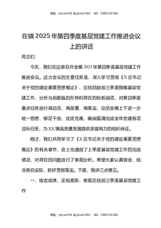 在镇2025年第四季度基层党建工作推进会议上的讲话.docx