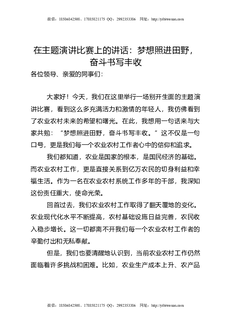 在主题演讲比赛上的讲话:梦想照进田野,奋斗书写丰收.docx