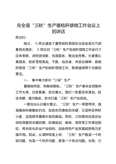在全县三秋生产暨秸秆禁烧工作会议上的讲话.docx