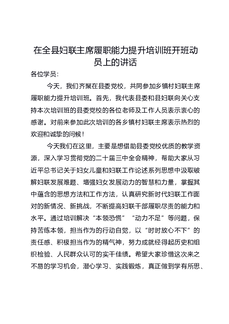 在全县妇联主席履职能力提升培训班开班动员上的讲话.docx
