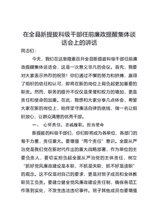 在全县新提拔科级干部任前廉政提醒集体谈话会上的讲话.docx