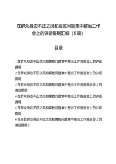在群众身边不正之风和腐败问题集中整治工作会上的讲话提纲汇编(6篇).docx