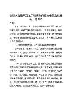 在群众身边不正之风和腐败问题集中整治推进会上的讲话.docx