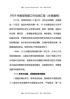 2025年基层党建工作总结汇报(乡镇通用).docx