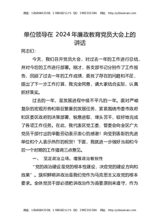 单位领导在2024年廉政教育党员大会上的讲话.docx