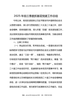 2025年前三季度抓基层党建工作总结.docx