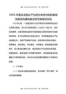 2025年落实全面从严治党主体责任和抓基层党建党风廉政建设责任制情况总结.docx