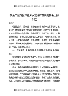 在全市融资担保服务民营经济发展调度会上的讲话.docx