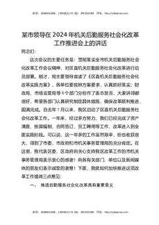 某市领导在2024年机关后勤服务社会化改革工作推进会上的讲话.docx