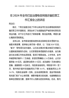 在2024年全市打击治理电信网络诈骗犯罪工作汇报会上的讲话.docx
