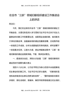 在全市“三新”领域妇联组织建设工作推进会上的讲话.docx