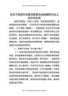 在关于党的作风建设重要论述摘编研讨会上的交流发言.docx