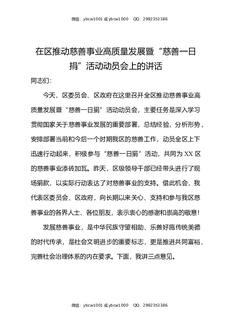 在区推动慈善事业高质量发展暨慈善一日捐活动动员会上的讲话.docx