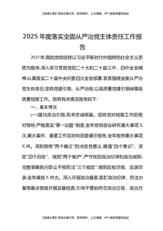 2025年度落实全面从严治党“一岗双责”情况报告.docx