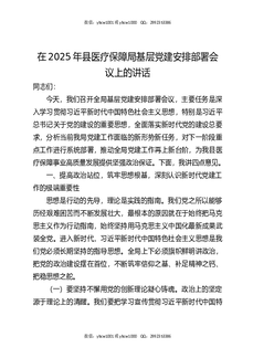 在2025年县医疗保障局基层党建安排部署会议上的讲话.docx