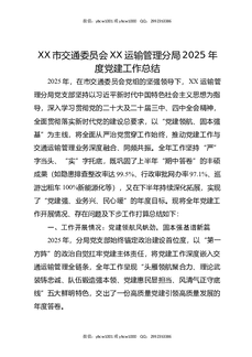 XX市交通委员会XX运输管理分局2025年度党建工作总结3.docx
