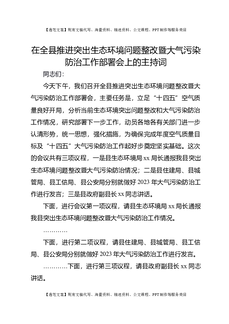 在全县推进突出生态环境问题整改暨大气污染防治工作部署会上的主持词.docx