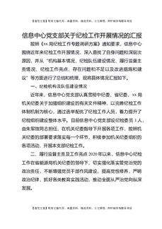 信息中心党支部关于纪检工作开展情况的汇报.docx