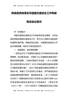 西盟县贯彻落实市道路交通安全工作电视电话会议情况.docx
