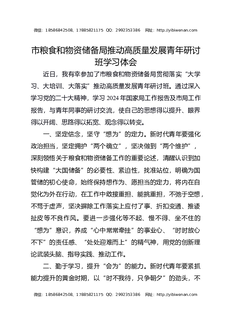 市粮食和物资储备局推动高质量发展青年研讨班学习体会.docx