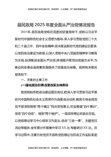 县民政局2025年度全面从严治党情况报告.docx
