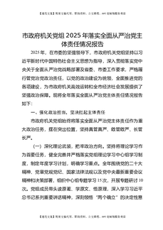 市政府机关党组2025年落实全面从严治党主体责任情况报告.docx