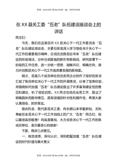 在XX县关工委“五老”队伍建设座谈会上的讲话.docx