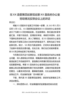 在XX县委第四巡察组巡察XX县政府办公室党组情况反馈会议上的讲话.docx