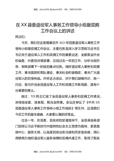 在XX县委退役军人事务工作领导小组暨双拥工作会议上的讲话.docx