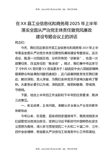 在XX县工业信息化和商务局2025年上半年落实全面从严治党主体责任暨党风廉政建设专题会议上的讲话.docx