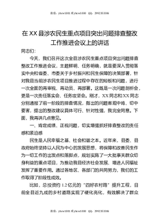 在XX县涉农民生重点项目突出问题排查整改工作推进会议上的讲话.docx