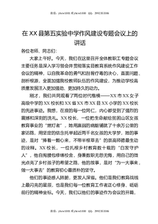 在XX县第五实验中学作风建设专题会议上的讲话.docx