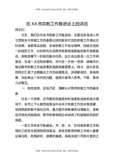 在XX市宗教工作推进会上的讲话.docx
