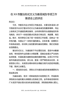 在XX市整治形式主义为基层减负专项工作推进会上的讲话.docx