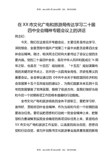 在XX市文化广电和旅游局传达学习二十届四中全会精神专题会议上的讲话.docx