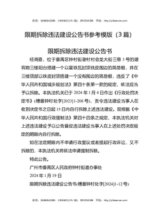 (3篇)限期拆除违法建设公告书参考模版.docx