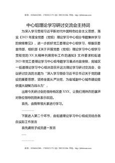 中心组理论学习研讨交流会主持词.docx