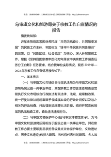乌审旗文化和旅游局关于宗教工作自查情况的报告.docx