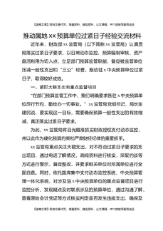 推动属地XX预算单位过紧日子经验交流材料.docx