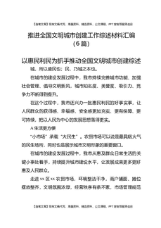 推进全国文明城市创建工作综述材料汇编(6篇).docx