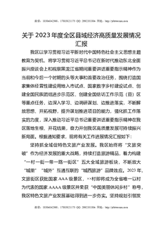 关于2023年度全区县域经济高质量发展情况汇报.docx