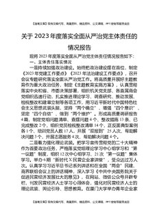 关于2023年度落实全面从严治党主体责任的情况报告.docx