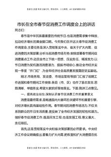 市长在全市春节促消费工作调度会上的讲话.docx