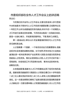 市委组织部在全市人才工作会议上的讲话稿.docx