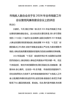 市残疾人联合会关于在2026年全市残联工作会议暨党风廉政建设会议上的讲话.docx