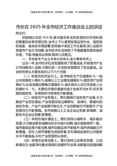 市长在2025年全市经济工作座谈会上的讲话.docx