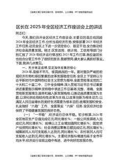 区长在2025年全区经济工作座谈会上的讲话.docx
