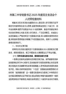 市第二中学党委书记2025年度民主生活会个人对照检查材料.docx