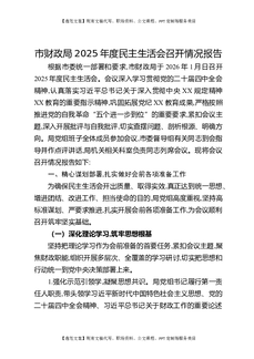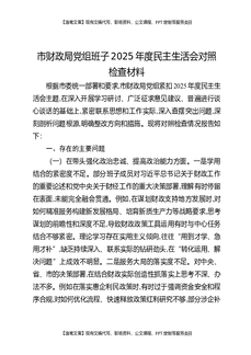 市财政局党组班子2025年度民主生活会对照检查材料.docx