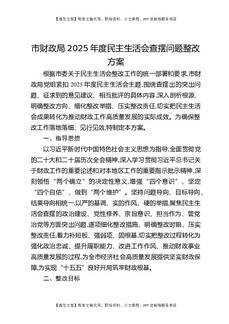 市财政局2025年度民主生活会查摆问题整改方案.docx